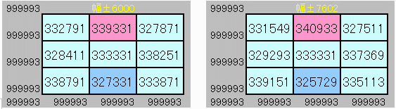 N=106-7として、中心をcとして、cを通る、縦、横、斜めの4つの列を加算することにより