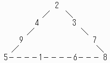 2.数値を正三角形上に配置したとき、「5」を頂点とする2等辺三角形の頂点の和がすべて15。