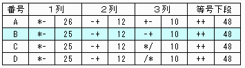 (26,12,10)→縦の各列(8,4,6)、(7,3,8)、(10,4,4)→横の各列(8,7,10)、(4,3,4)、(10,4,4)の計算が「48」になる記号