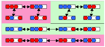 また、任意の配列からすべてを裏にすることができることと、転置の操作を逆にたどることができることを考えあわせると、任意の配列から別の任意の配列に変換することが可能であることが解ります。