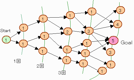 (偶奇別なし、大きい数字は下にある、予備列1つ)とする(=Tower of Hanoi問題)。