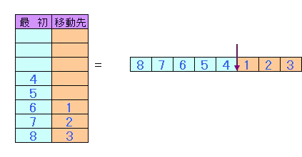2,4→移動先,1,3→移動先,1→最 初,3,2→最 初,3→移動先,