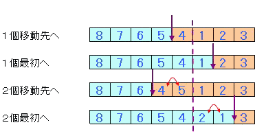 この場合、1個だけ移動するのは、境界が1個ずれるだけと同じである。