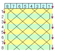 下図(n=8の場合)のようにカードのある部分だけ上部を付き合わせると、8個のセルにカードがならび、