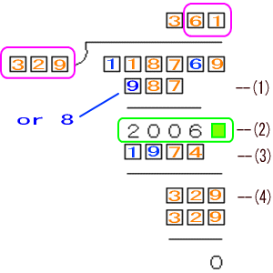 361 _______ 329)118769 987 ―――― 2006 1974 ―――― 329 329 ――― 0