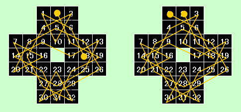 この配列では2→9→14→22→31→24→19→11という特異なルートがあり、2,14,31,19 は、接続するマス目が2つしかないという特徴があります。