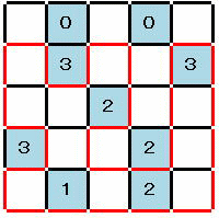さらに、「0以外の数字」のマス周辺には指定数の線がなくてはならない。