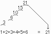 1+2+3+4=10,5+6=11も連続した数であるから10+11=21