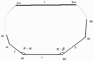 さて、できた無限角形の辺A∞B∞の長さをr,s,α,βで表して下さい。