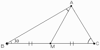 ∠B=30度の三角形ABCがあります。 BCの中点をMとします。