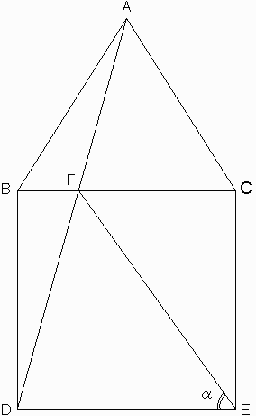 三角形ABCは正三角形、四角形BDECは正方形であるとします。 点Aから点Dに直線を引き、ADとBCの交点をFとします。