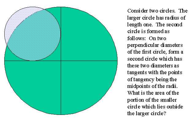 小さい方の円の、大きい円の外側にある部分の面積を求めてください。