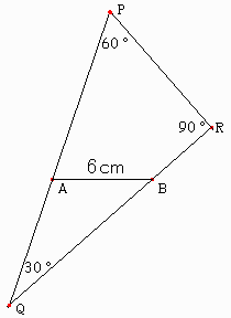 平面上の2点A、Bにピンが立ててあり、AB間の距離が6cmになっている。 ∠PQR=30°、∠PRQ=90°の直角三角形PQRを、辺PQ、QRがそれぞれ点A、点Bに接したままこの平面上で移動させる。