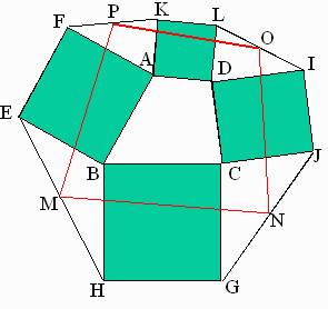 四角形ABCDの外側に正方形ABEF,正方形BCGH,正方形CDIJ,正方形DAKLを書き、EH,GJ,IL,KFの中点をそれぞれM,N,O,Pとします。