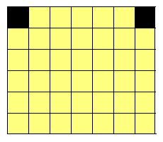 図のように6×7のマス目がある。 この42のマスのうち、最上段両隅の黒いマス以外の部分を2×1のサイズのタイル20枚を使ってすき間無く埋めてください。 タイルは縦に使っても、横にして使ってもよいです。