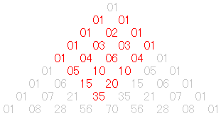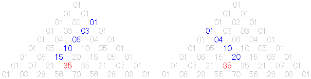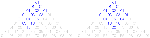 図は、どれもパスカルの三角形ですが、最上段は 0C0=1 とします。