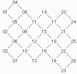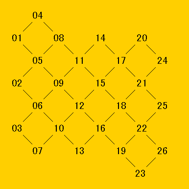 図の01,02,03のところに白石、24,25,26のところに黒石を置きます。