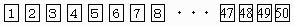 表には1〜50までの整数を書き、裏には何も書いていないカードが図のように並べられています。