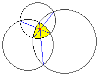 (3円が重なるとは、図の黄色部分のような領域が存在することを意味する。)