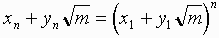 となるように整数(xn,yn)を定めると、正整数解全体は