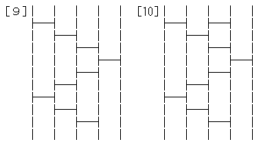 ! A(1)〜A(n)をA(n)〜A(1)に並べ替える横線のパターンを生成する。