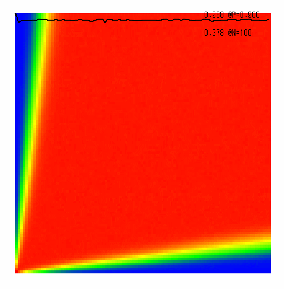 左下隅がD(1,1)=1で 赤:100% 青:0% です。