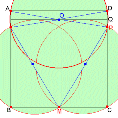 また、辺BCの中点Mは2円の交点で、辺CD上の点Pも2円の交点。