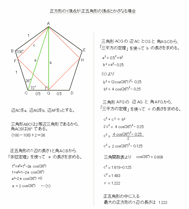 (注意の正方形のすべての頂点が五角形の辺上にくる、というのは間違いです)