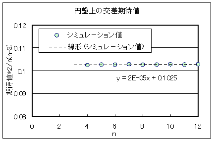 円周上ではなく、円盤上(面積で一様分布)ではどうなるかシミュレ−ションしてみた。