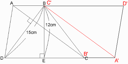 辺DCの延長上に、CF=ABとなる点Fを取ると、△DFBが求める面積となる。