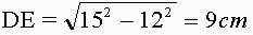 三平方の定理よりDE=9cm