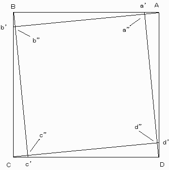 発射された瞬間は、Maは点Bを、Mbは点Cを目指して飛び出すが、非常に微少な時間が経過したとき、Mbは点Cに向かって動いているので、Maは正方形の少し内側、点a”に到達するであろう。