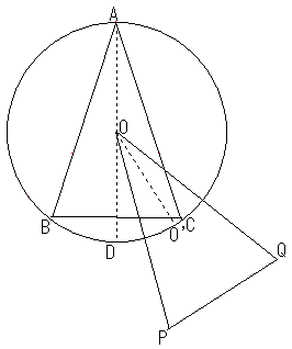 次に△OPQを、その外心が点O'となり、さらに△ABC≡△OPQとなるように作る。