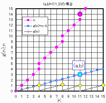 漸化式よりg(n)はb/aのk倍から整数を引いたものであるので、その小数部分はrである。