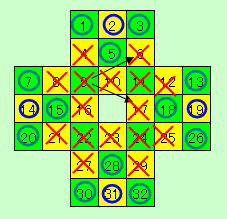 2→9→14→22→31→24→19→11→4→7→21 →30→29→26→12→3→10→15→23→18→6 →1→8→20→27→32→25→13→17→5→16 →28解法