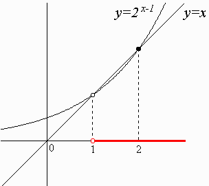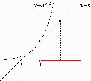 y'=logen>1 となり、(2) の傾きより大きくなります。