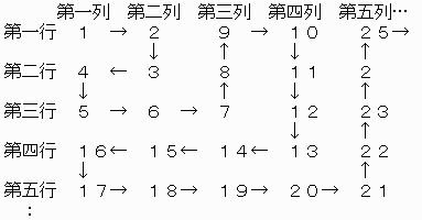 自然数を図のように並べていきます。