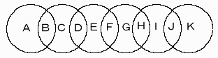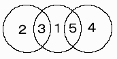 円が3つの場合は、1から5の数が、例えば左図のように入ります。