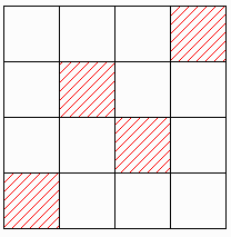 今、下図のように4×4のますの中に、1〜9までの数を入れていきます。 同じ数字を何回か使ったり、使わない数があってもかまいません。 また斜線が入っているところには、数は入れません。