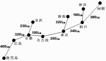但し、金沢〜名古屋間は240km離れているとします。