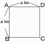 ただし、1辺の距離はakmとします。