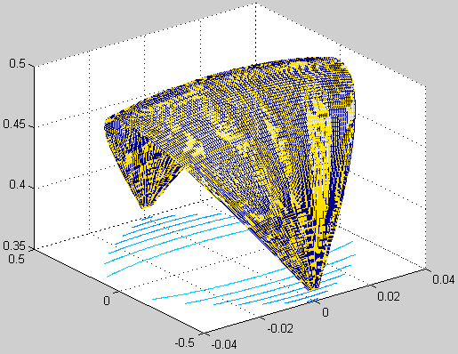 これらの対抗する2面は厳密には一致しないはずですが、数値計算してみると第2図の黄のWire-Frameと