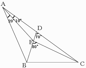 下図で点A、D、Cは同一直線上の点である。 ∠DCBの大きさを求めよ。